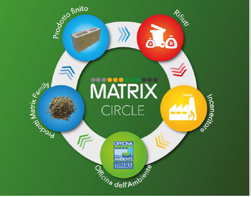 Officina dell’Ambiente, con le credenziali di ordine tecnico-ambientale della Matrix Family, con una scelta precisa delle applicazioni e dei settori di destino, tutti completamente tracciati e mai a contatto diretto con l’ambiente, ed un approccio estremamente rigoroso ai criteri di eco-compatibilità della filiera si pone come azienda d’elezione per l’edilizia sostenibile e lo fa attraverso il concetto del Matrix Circle che vanta una performance di riciclo unica nel suo genere, pari al 99,6% della scoria trattata. Non a caso, fin dalla sua nascita, Officina dell’Ambiente non ha mai fatto ricorso alla discarica, ma ha sempre interamente riciclato tutti i suoi prodotti nell’edilizia.